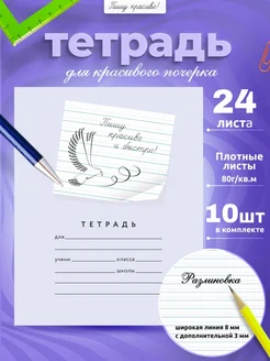 Тетради школьные в линейку 8 мм с доп.линией 3мм 24 л, 10 шт