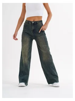 синий джинсы широкие трубы клеш