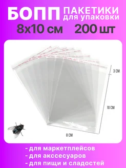 Упаковочные БОПП пакеты с клеевым клапаном 8х10 см 200 шт