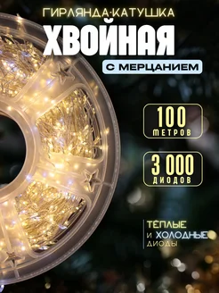 Катушка "Хвойная лапа" 100м теплый белый