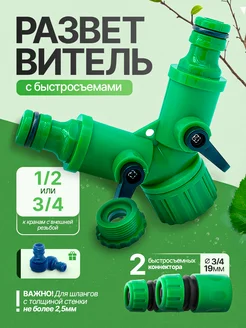 Разветвитель для полива с быстро съёмами 3 4 двухканальный