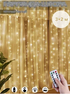 Гирлянда-штора "Роса" 3х2 светодиод пульт USB теплый-белый