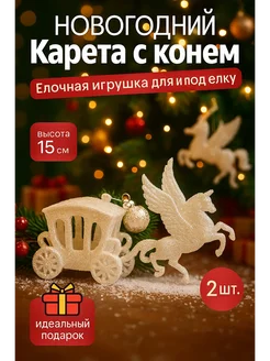Елочная новогодняя игрушка карета с конем подарок на нг