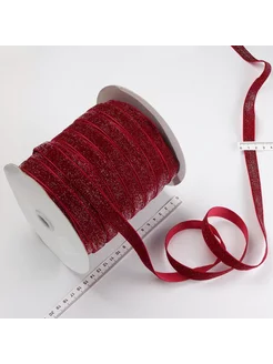 Лента бархатная с люриксом1 5 см 100 ярдов бордовая 0166