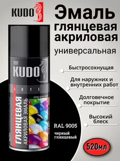Краска аэрозольная акриловая черная глянцевая в баллончике