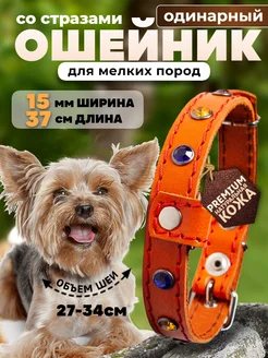 Ошейник кожаный для собак и кошек 15мм одинарный короткий