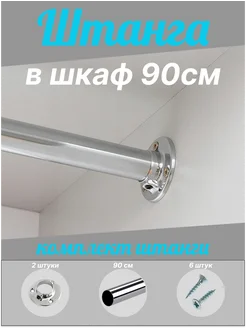 Штанга для шкафа круглая 900мм хромированная с крепежами