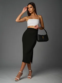 Юбка миди с разрезом в рубчик