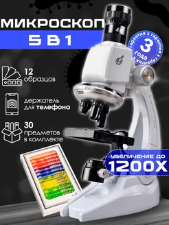 Микроскоп детский школьный с образцами в кейсе