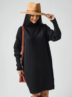 Платье черное вязаное до колена