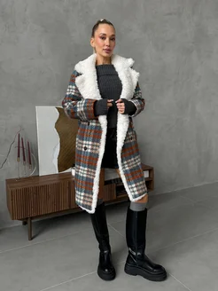 Пальто на весну утепленное в клетку