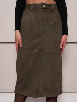 Юбка миди замшевая с разрезом