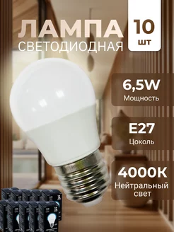 Лампа светодиодная LED Е27 6.5Вт 4000К 10 штук