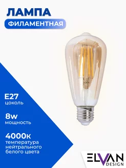 Светодиодная ретро лампочка филаментная Е27 8W