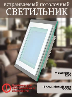 Светильник встраиваемый потолочный квадратный со стеклом