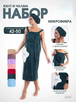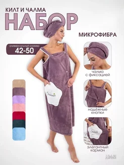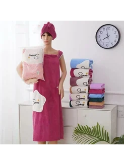 Халат-полотенце банный с чалмой для сушки волос