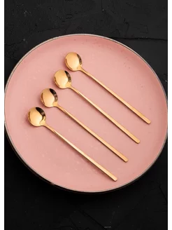 Ложки чайные черные круглые с длинной ручкой 4шт