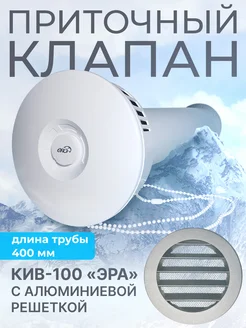 Приточный клапан КИВ-100 ЭРА с трубой 400 мм и ал. решеткой