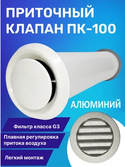 Приточный вентиляционный клапан ПК-100 с алюмин решеткой