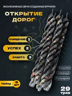 Восковые свечи Открытие Дорог черные с Базиликом, набор 5 шт