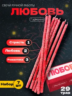 Восковые свечи "Любовь" красные с Розой, набор 7 шт