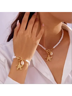 Комплект колье и браслет под жемчуг