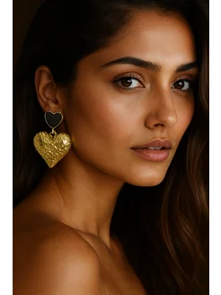 Серьги сердечки большие золотистые