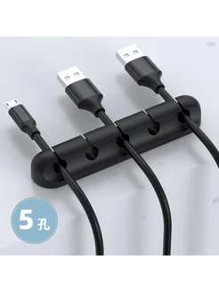Держатель для проводов и шнуров органайзер 5 разъёмов Чёрный
