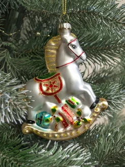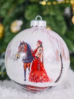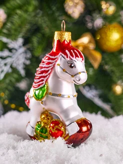 Стеклянная елочная игрушка шар Лошадка 60мм