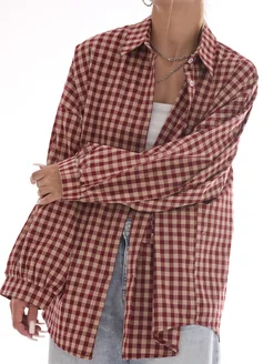 Рубашка в клетку удлиненная хлопок y2k