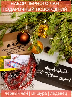 Набор черного чая подарочный новогодний со сладостями
