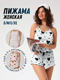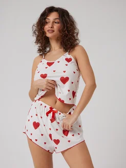 Пижама женская майка с шортами с сердечками