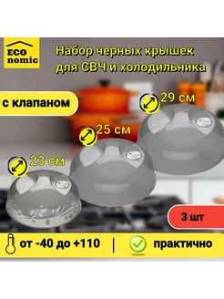 Набор крышек для микроволновки 23 25 и 29 см черные 3шт
