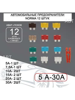 Набор предохранителей, тип Стандарт. 12 штук, номинал 5-30 A