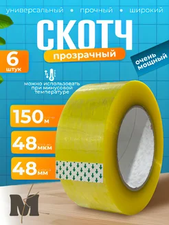 Скотч прозрачный широкий 48мм48мкм 150м 6 шт