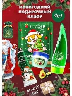 Подарочный новогодний набор крем для рук патчи и бальзам 4в1