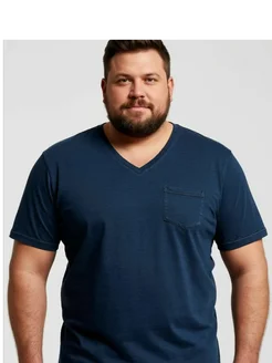 Футболка с карманом, V-образная, в полоску, большие размеры
