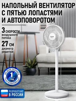 Вентилятор напольный для дома, 5 лопастей, 27 см, 50 Вт
