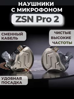 Наушники проводные с микрофоном для телефона KZ ZSN Pro 2