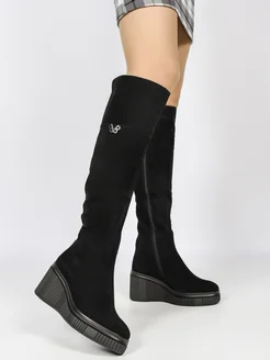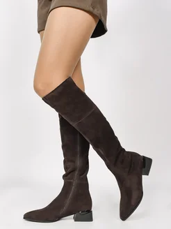 Ботфорты демисезонные высокие на каблуке замша натуральная
