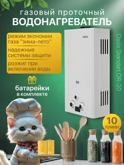 Водонагреватель газовый 20кВт 10л комплект с батарейками