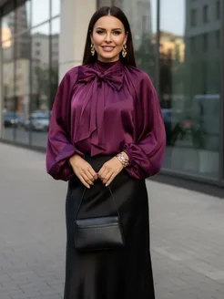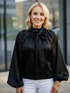 Блузка нарядная с бантом шелковая офисная вечерняя