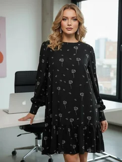 Блузка нарядная офисная вечерняя в горох шифоновая с бантом