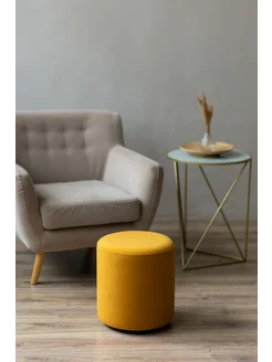 Пуфик горчичный круглый для спальни и прихожей