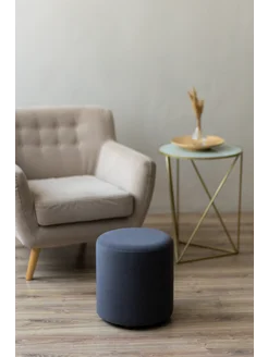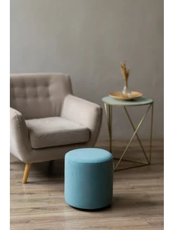 Пуфик голубой круглый для туалетного столика и спальни