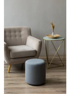 Пуфик серый круглый для спальни и гостиной