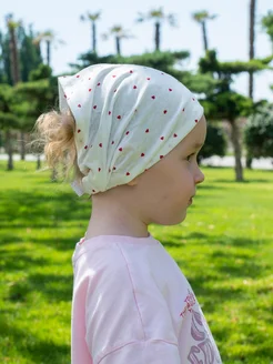 Косынка для девочки летняя на резинке бандана "Сердечки"