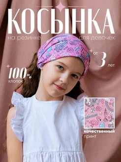 Косынка для девочки летняя на резинке бандана "Единорог"