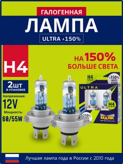 Лампа автомобильная галогенная H4 12V 60 55W P43t +150%