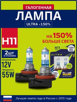 Лампа автомобильная галогенная H11 12V 55W PGJ19-2 White+150